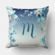 Adicione um toque sonhador e personalizado ao seu espaço, com este travesseiro decorativo monográfico branco, com a letra M rodeada por tons azuis suaves e delicados florais pastéis. A fronteira floral encantadora e o pano de fundo de ombré estrelado à noite criam um sotaque mágico e inspirado em conto de fadas perfeito para quartos, berçários ou nozelos aconchegantes. Ideal como presente personalizado para aniversários, para exércitos de casa, ou qualquer pessoa que ame decoração elegante e monograma.