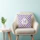 Os triângulos geométricos modernos travesseiro decorativo em roxo e branco com TEXT PERSONALIZÁVEL e MONOGRAM. A citação cristã inspiradora curvada diz BLESSED TO BE A BLESSING mais um nome marcador de posição. O padrão de fundo é de triângulos roxos brancos e reais. O padrão geo é invertido no verso. Você pode adicionar seu nome e monograma, e criar seu próprio texto curvo, por exemplo, verso Bíblia favorito ou citação motivacional. Este simples, mas na moda, design poderia fazer um excelente adicional ao seu decoro moderno. Disponível em outras cores. Escolha a partir de uma ampla seleção de presentes personalizáveis de decoração doméstica de na moda, projetados por Designs Bereanos.