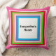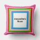 Padrão divertido e feminino com a frase "Name Room" escrita em tipografia preta contra um fundo branco. Monograma no verso em branco contra um fundo rosa brilhante sólido. Quadrados geométricos em azul céu, branco, pêssego claro, verde lima, vermelho e rosa. Design Original © TamiraZDesigns.