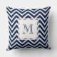 Este design gráfico moderno de fêmur em azul-da-noite apresenta um monograma inicial. O padrão náutico de ziguezague terá todos admirando seu gosto e estilo em decoração doméstica. Altere o inicial para se adequar a você e recolore o travesseiro para combinar ou contrastar com a sua decoração.