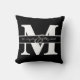 Travesseiro preto e branco com letras iniciais grandes e negrito e nomes de casais na frente e atrás. Faria um presente de excelente para um casamento, aniversário... ou encomendaria para você mesmo! Projetado por Simplesmente Posto por Robin.