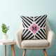 Decore seus espaços internos ou externos com esta almofada divertida que apresenta um padrão de listras diagonais preto e branco com uma inicial personalizada e cores personalizáveis. Este design é ousado e moderno, e será um ótimo complemento para uma sala de estar moderna, quarto, varanda ou pátio. Modifique a inicial e altere as cores do fundo, listras e forma de diamante para combinar com a paleta de cores da decoração da sua casa.