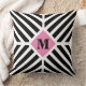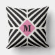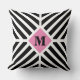 Almofada Monograma Moderno de Listras Diagonais Preto e Bra