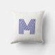 Este travesseiro moderno e na moda apresenta seu monograma em uma primeira tipografia moda, stripida, ao estilo disco. O travesseiro mostrado aqui contém uma letra azul sobre um fundo branco, mas você pode escolher facilmente qualquer cor para a letra e o fundo na ferramenta design. Um olhar legal e colorido que qualquer um adoraria.
