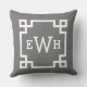 design na moda e travesseiro de sotaque quadrado moderno apresentam um design e um monograma de quadros geométricos de borda grego que podem ser personalizados. Cinzas e cores brancas. A cor de fundo pode ser modificada.