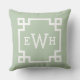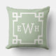 design na moda e travesseiro de sotaque quadrado moderno apresentam um design e um monograma de quadros geométricos de borda grego que podem ser personalizados. Sage verde e branco. A cor de fundo pode ser modificada.