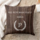 Travesseiro de monograma familiar personalizado com design de madeira. Presente perfeito para famílias com a cabana da floresta ou uma fazenda. Para todos que gostam de design rusticidade.