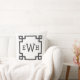 design na moda e travesseiro de sotaque quadrado moderno apresentam um design e um monograma de quadros geométricos de borda grego que podem ser personalizados. Chic soft black / onyx e branco. A cor de fundo pode ser modificada.
