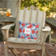 travesseiro de lado duplo super fofo com um padrão botânico tropical vermelho, branco, azul, acentuado com o seu nome e nome monograma. Perfeito para uma varanda, pátio, piscina, casa de praia ou jardim.
