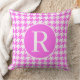 travesseiro decorativo quadrado com padrão-redondo, cor-de-rosa, monograma, com houndstooth