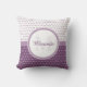 Dê a seu estilo pessoal um olhar contemporâneo feminino com este travesseiro decorativo roxo e branco na moda com um teste padrão de bolinhas do círculo da modificação. Toda a menina moderna amaria ter sua inicial do nome e do monograma personalizada neste design formal e moderno.