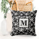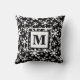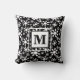 Simples Travesseiro decorativo de Monograma da Flor Branca de Margarida Preta. A design tem um simples padrão de flores com margaridas brancas sobre fundo preto. Na moda preto e design branco. Personalize o travesseiro com o seu monograma.
