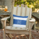 Vestir o seu espaço ao ar livre com este travesseiro royal azul e branco listrado com um simples monograma inicial de uma letra. O perfeito travesseiro de lado duplo para a varanda, pátio, piscina e solha, galpão de jardim, barco e muito mais. Faz um maravilhoso presente de casamento e aquecimento de casa.