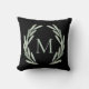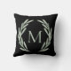 Travesseiro decorativo verde do preto do monograma da grinalda do ramo de oliveira da aguarela.
