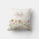 Apresentando nosso Travesseiro decorativo Floral de Prado de Flor Selvagem Monograma. Apresentando ilustração aquosa da ilustração e texto do jardim de flores silvestres que pode ser personalizado no estilo romântico e elegante. Adequado para a menina e crianças.