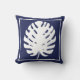 Almofada Monstera Leaf Marinho Azul e Branco Costeiro Moder