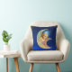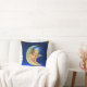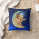 Bronzeado brilhante e loiro, anjo romântico de olhos azuis pendurado na Lua com uma brilhante pedra azul da safira em 3D
