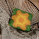 Esta flor de caleidoscópio mosaico apresenta azulejos verdes e amarelos brilhantes. É uma geometria vívida inspirada por fractais, mandalas e mosaicos de vidro manchados. Obtenha este design trippy agora para seu amigo favorito que ama cores brilhantes!