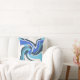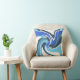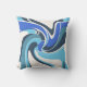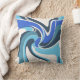 Destaque é um design de arte contemporânea, girando, inspirado pelo estilo Moderno do século Médio, em formas curvas em azul brilhante e real, e lacrimejo em branco. Este é um padrão de onda e fluxo, sugestivo de movimento, e projetando uma vibração fantasiosa, respiratória e chique, macia e relaxada para a área viva, quarto, espaço de trabalho, terraço ou decor do pátio, oferecendo um sentimento de calor e tranquilidade. Há muito potencial decorador nesta peça de sotaque, que se ajustado em vários estilos (inovadores ao tradicionais), desde retrô/safra até fazenda moderna ao estilo rústico de hacienda a loft urbano e alta ascensão.