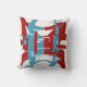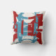 Um design ousado de arte abstrato, inspirado no estilo Moderno do século Médio, é apresentado em uma medalha de formas geométricas curvas e linhas em vermelho e azul brilhante sobre um fundo esbranquiçado, que cria um padrão geral de formas côncavas e mescladas em um olhar artístico contemporâneo. Trata-se de um espírito criativo, inovador e de cor vívida, com ornamentado e linhas fluentes no design básico, que projeta uma qualidade sofisticada, mas festiva e alegre para a área viva, o quarto, o espaço de trabalho, o terraço ou a decoração do pátio. Isto também oferece um sentimento de calor e tranquilidade, uma ambição relaxada e pacífica para o seu espaço pessoal. Há também muito potencial decorativo nesta surpreendente peça de sotaque, que se ajustado com muitos estilos, de retrô/vintage a rancho rústico a loft urbano moderno ou alta.