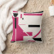 Apresentado é um design ousado, geométrico, abstrato, composto por formas e linhas em rosa burgundy e preto sobre fundo esbranquiçado, criado no espírito do estilo Moderno do século Médio e projetando uma imagem como figura em um olhar contemporâneo e artístico. Esta é uma design colorida e minimalista nas linhas simples e tons contrastantes. Há também um pouco de arte tribal, mesmo de uma pintura contemporânea de abstrato art. O design projeta uma qualidade sofisticada e polida para a área de vida, quarto, espaço de trabalho, terraço ou decor de pátio, que também oferece um sentimento de calor, uma ambição relaxada e pacífica para o seu espaço pessoal, um lugar para recuar e contemplar enquanto está longe do mundo do dia a dia barulhento. Há muito potencial decorativo nesta peça de sotaque, que se ajustado com muitos estilos, de retrô/safra a rancho rústico a loft urbano moderno ou alta.