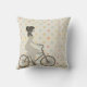 Chic e modernos, presentes personalizados e acessórios com uma garota elegante andando de bicicleta com a Toalha Eiffel ao fundo. Decorado com um padrão de bolinhas multicolorido.