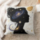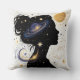 Uma ilustração cativante da silhueta de uma mulher adornada com estrelas brilhantes e elementos cósmicos giratórios, simbolizando conexão com o universo, elegância e beleza.