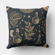A mesmerizing celestial witchcraft seamless pattern throw pillow showcasing intricate gold line art of potion bottles, moon phases, constellations, and magical botanicals on a deep black background. This elegant blend of nature and cosmic alchemy captures a mystical, witchy aesthetic perfect for celestial lovers, Halloween, or boho lover.