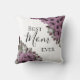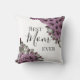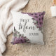 Um travesseiro de flor na moda lavanda com a legenda "a melhor mãe de todos os tempos" num simples pano de fundo branco criando vibrações cômicas simplistas. Pode ser personalizado com seu próprio texto ou nome.