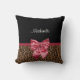 Mantenha-se na moda com este travesseiro decorativo marrom de pele de leopardo com uma fita vermelha elegante amarrada num arco chic. Personalize este design de impressão animal moderno e clássico adicionando seu nome. Imagem impressa plana, não com pelo ou fita real.
