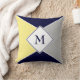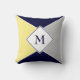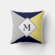 Travesseiro decorativo MONOGRAM simples, mas na moda PERSONALIZÁVEL, mostrando triângulos e quadrados nas cores de MARINHO, AMARELO e CINZA PRATA. Folheto de Peça Correspondente disponível. Ideal para o tema do decoro náutico doméstico ou para aqueles que procuram o esquema de cores definitivo e iluminante.
