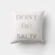 Adicione um toque de diversão e sass ao seu espaço com esta almofada 'Não seja salgado'. Apresentando um design lúdico, esta almofada é perfeita para aqueles que amam humor, brincadeira de palavras e um pouco de atitude. Ideal para salas de estar, quartos ou decoração de escritório, esta almofada acolhedora e na moda faz um presente excelente para amigos, familiares ou qualquer pessoa que aprecie uma boa piada. Traga alguma diversão leve para sua casa com esta peça de sotaque.
