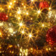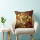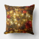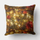 Travesseiro decorativo de Natal glamouroso com bolhas de Natal vermelhas e ouros, luzes cintilantes, galhos e galhos de árvores de Natal.