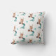 Complemente as suas decorações de Natal em tons de azul-teal e vermelho com esta almofada única com um padrão de renas sereias segurando um presente vermelho. Ilustrado e desenhado por Patricia Alvarez.