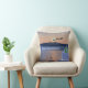 Este travesseiro decorativo de Natal mostra Papai Noel voando sobre Santorini, grego.