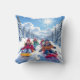 Adorável travesseiro decorativo de Natal com uma adorável cena de inverno com crianças a dormir alegremente na colina.