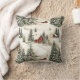 Este travesseiro rústico apresenta uma cena de inverno em floresta com pinheiros cobertos de neve e casas vermelhas aninhadas na neve. Perfeito para decoração sazonal e feriado.