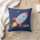 Adicione um sentido de aventura para uma sala dos miúdos, especialmente sala dos meninos com este travesseiro bonito e colorido que tem um navio do foguete soprar fora em uma galáxia das estrelas através do fundo azul escuro. Uma parte do divertimento com espaço para a personalização conhecida para a criança. Aperfeiçoe para o astronauta pequeno.