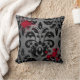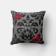 Uma bela cinza escura e cor damasco preta com sangue derramado. Mostrado aqui em um travesseiro decorativo quadrado. Isso seria bom com um tema assustador do Halloween.