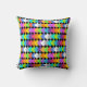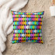 Este travesseiro decorativo tem um design geométrico de diamantes de neon que se sobrepõem num campo de preto.