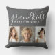 Um presente pensativo que os avós vão tesourar, este design personalizado apresenta um modelo de 3 fotos para personalizar com fotos dos netos. Uma combinação do moderno guião manuscrito combinado com uma fonte moderna sans serif que diz "netos fazem a vida grandiosa!" O fundo é uma cinza de carvão moderna que tem uma vibração moderna. Crie memórias duradouras com este travesseiro decorativo de manutenção que faz um presente maravilhoso para o Dia dos Avós, aniversário, feriado e muito mais.