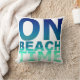 Este travesseiro do oceano da tipografia caracteriza letras corajosas de uma fotografia do oceano. A escala dos azuis vai de escuro à turquesa brilhante. Em tamanho 16 disponíveis x 16 e 20 x 20.