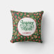 Este fabuloso travesseiro verde de Natal, arte 16" x 16", com um padrão de santas, pão-de-gengala, árvores de Natal, ornamentos, anjos e presentes que diz Feliz Natal em francês "Joyeux Noel" e que tem seu sobrenome seria fantástico em seu sofá, cama ou cadeiras! É tão festivo e vai com qualquer decoração de Natal - é rústico, mas retrô e moderno, mas tradicional! Vai parecer fantástico e adicionar aquele pequeno toque de Natal extra à sua casa!