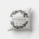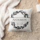 Personalize este design minimalista de folha preta e branca da almofada de lançamento com o seu último nome e o ano do seu casamento. Faz um ótimo presente de casamento, presente de aniversário de casamento para um presente para qualquer casal.