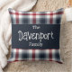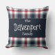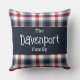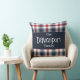 Travesseiro decorativo moderno vermelho, branco e azul-tartan, com nome familiar personalizável para complementar a decoração da sua fazenda. As cores vermelho e azul profundas farão qualquer canto confortável e quente.