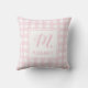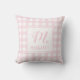 Bebê rosa e branco grande travesseiro decorativo Gingham para o quarto para crianças ou meninas. Fácil de personalizar o travesseiro de sotaque do estilo noz-xadrez, cor-de-rosa-macio, com monograma manuscrito, nome de coraçãozinho e moças na fonte sans serif moderna. Esta almofada bonita é uma bela ideia de decoração e presente em rosa feminino com charme country. Design © yBEE PAPERIE #ybeepaperie #pinkginghammonogrampillow #lambsnamepillow