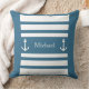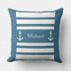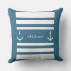 Travesseiro decorativo Náutico De Nomes De Âncora Azul E Listras Brancas. Você pode personalizar por texto escrevendo (nome, nome da família, monograma...).
