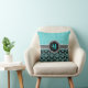 Almofada Nome do Damasco do Glitter Azul-Aqua