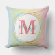 Travesseiro decorativo personalizado com gradiente de Pastel, em cor azul e branca rosa, com modelo de Nome e Monograma no centro. Moldura de gradiente do arco-íris em cor de ouro.