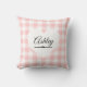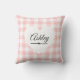 Almofada Nome do Monograma do Coração Branco Gingham Cor-de